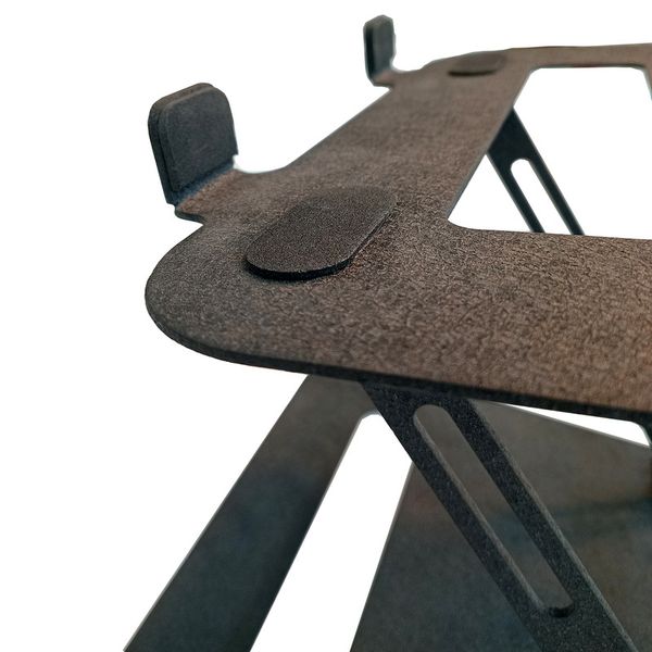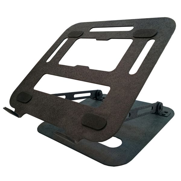 این پایه نگه دارنده لپتاپ، با قابلیت تنظیم راحت ارتفاع و زاویه، کار با لپتاپ را برای کاربران بسیار لذت بخش خواهد کرد و از درد کمر و گردن آن ها جلوگیری می کند. به علاوه این پایه نگهدارنده بسیار مستحکم و با دوام ساخته شده و به گونه ای طراحی شده که تمامی سایزهای لپتاپ از 10 تا 17 اینچ را به خوبی روی خود نگه می دارد. همچنین سوراخ های روی این پایه باعث گردش هوای مناسب از زیر لپ تاپ و خنک نگه داشتن آن می شود. پدهای ضد لغزش نصب شده روی این پایه که هم روی صفحه رویی و هم زیر صفحه زیرین قرار گرفته است برای جلوگیری از لغزش پایه و لپ تاپ به کار رفته است. وزن این پایه کمتر از 2 کیلوگرم و حمل آن نیز بسیار راحت است.